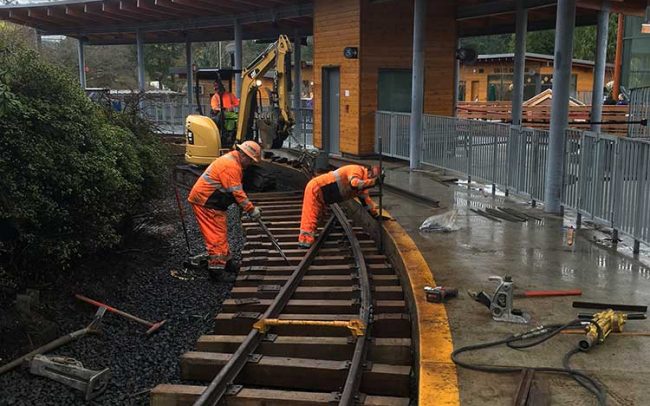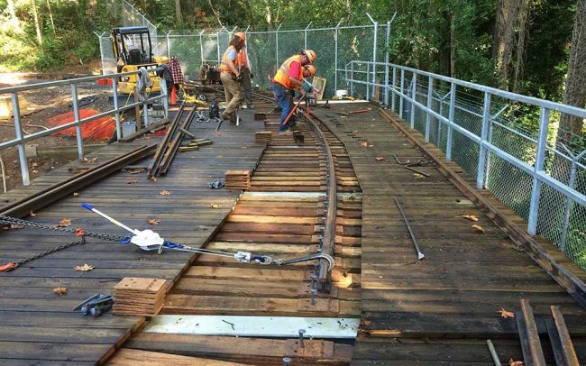 Condon Construction was chosen to help construct a new track expansion for an addition at the Portland Zoo for elephants. Along with deconstructing track, we rebuilt new track, circular wooden trestle and turnouts..